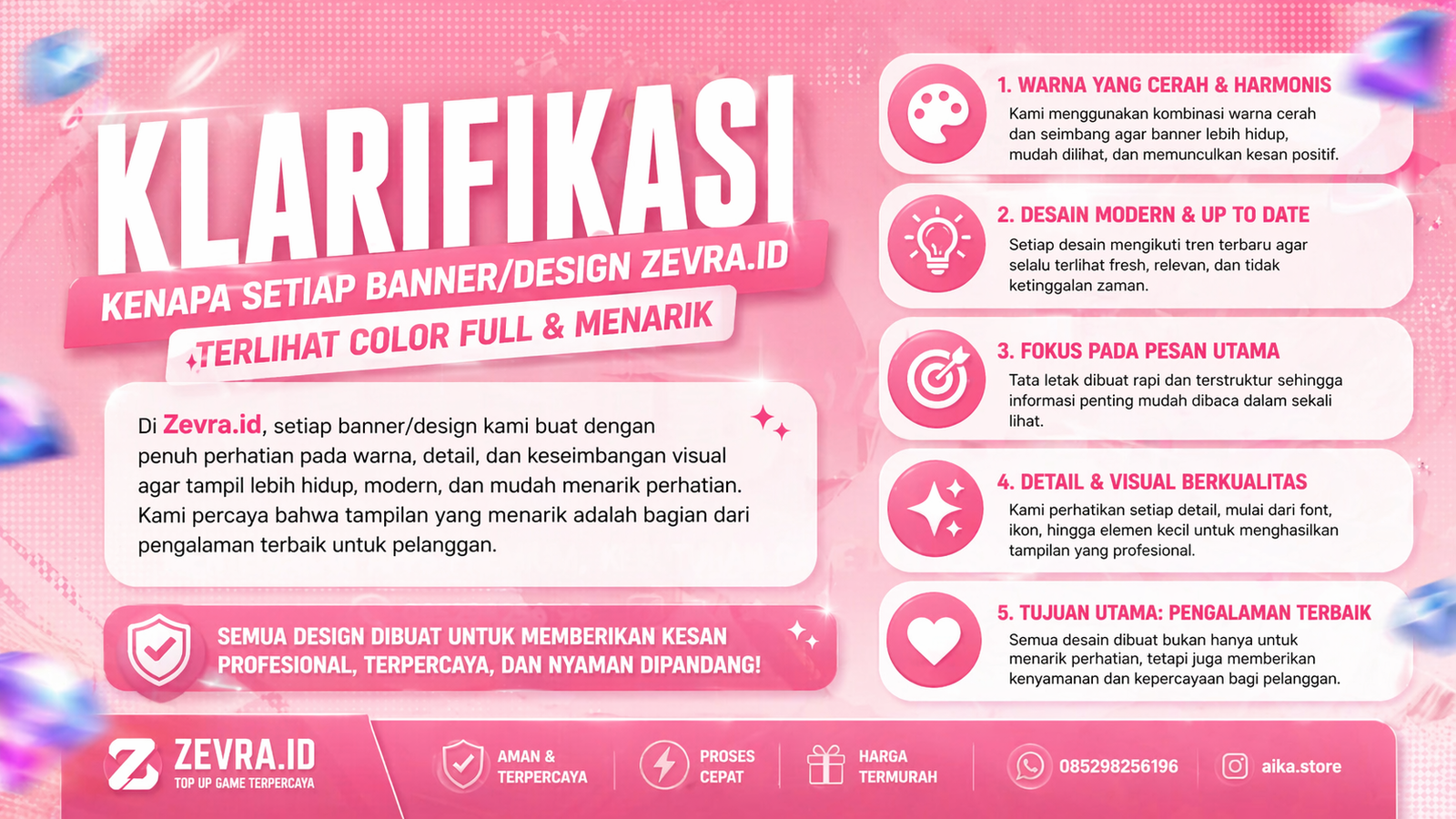 Dalam dunia digital, tampilan visual menjadi salah satu faktor penting dalam menarik perhatian pengguna. Hal ini juga menjadi fokus utama Zevra.id dalam setiap pembuatan banner dan desain promosi. Banyak yang bertanya, kenapa setiap desain Zevra.id terlihat lebih hidup, berwarna, dan enak dipandang? Berikut penjelasannya.